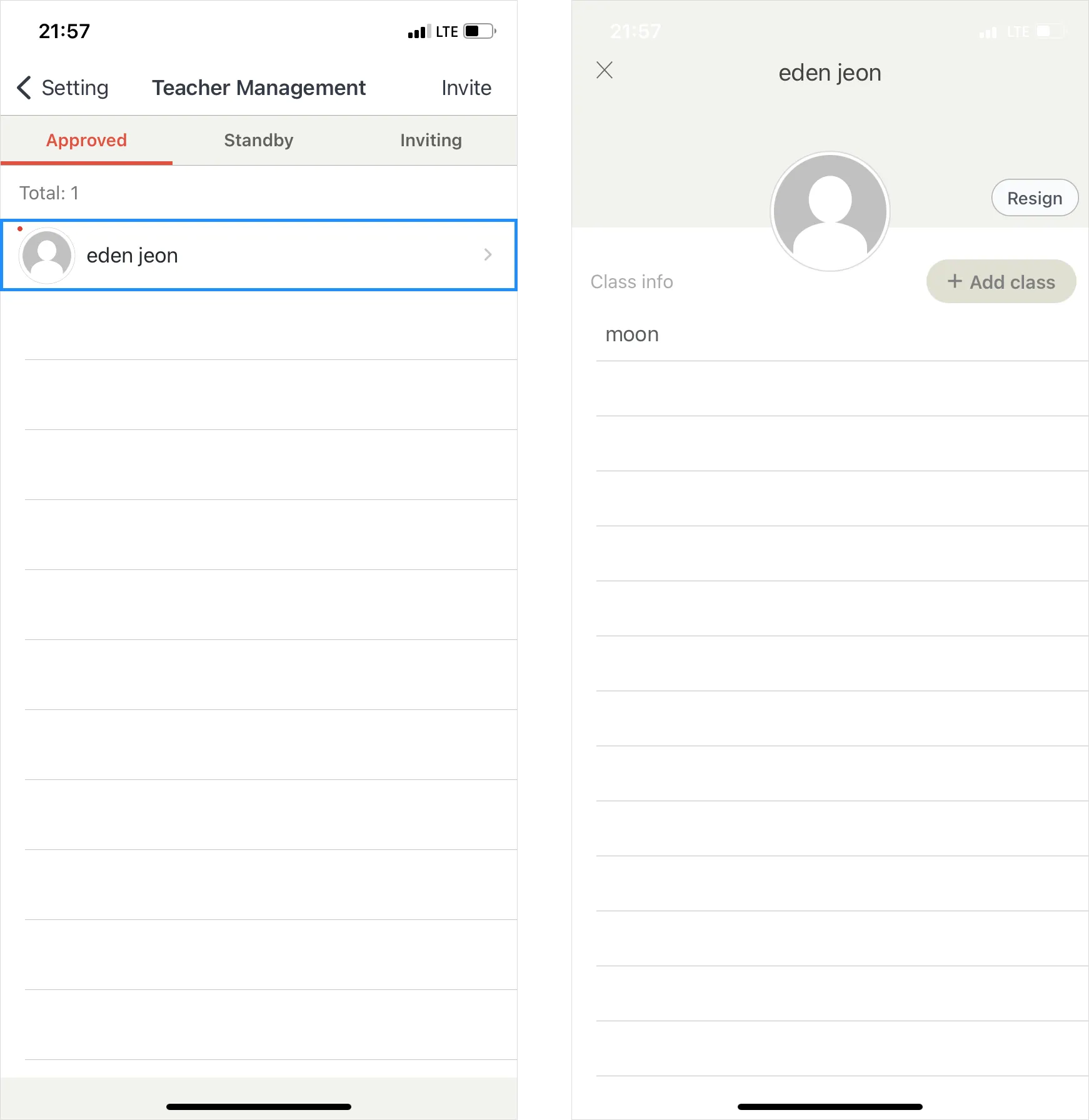 When selecting ‘Resign’, teachers don’t belong to the center and will no longer have authorities.
