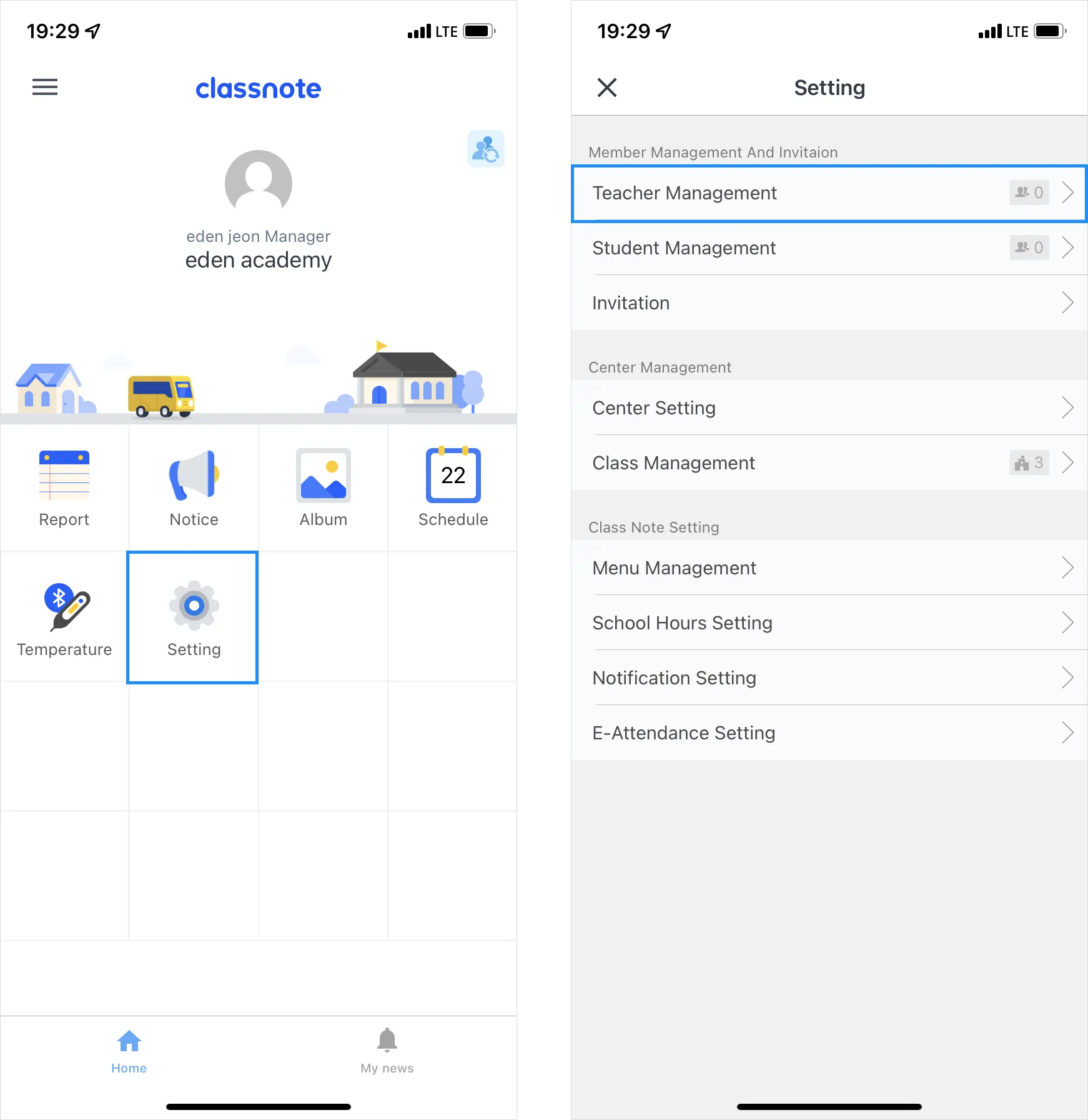 Access ‘Setting’ and select ‘Teacher Management’.