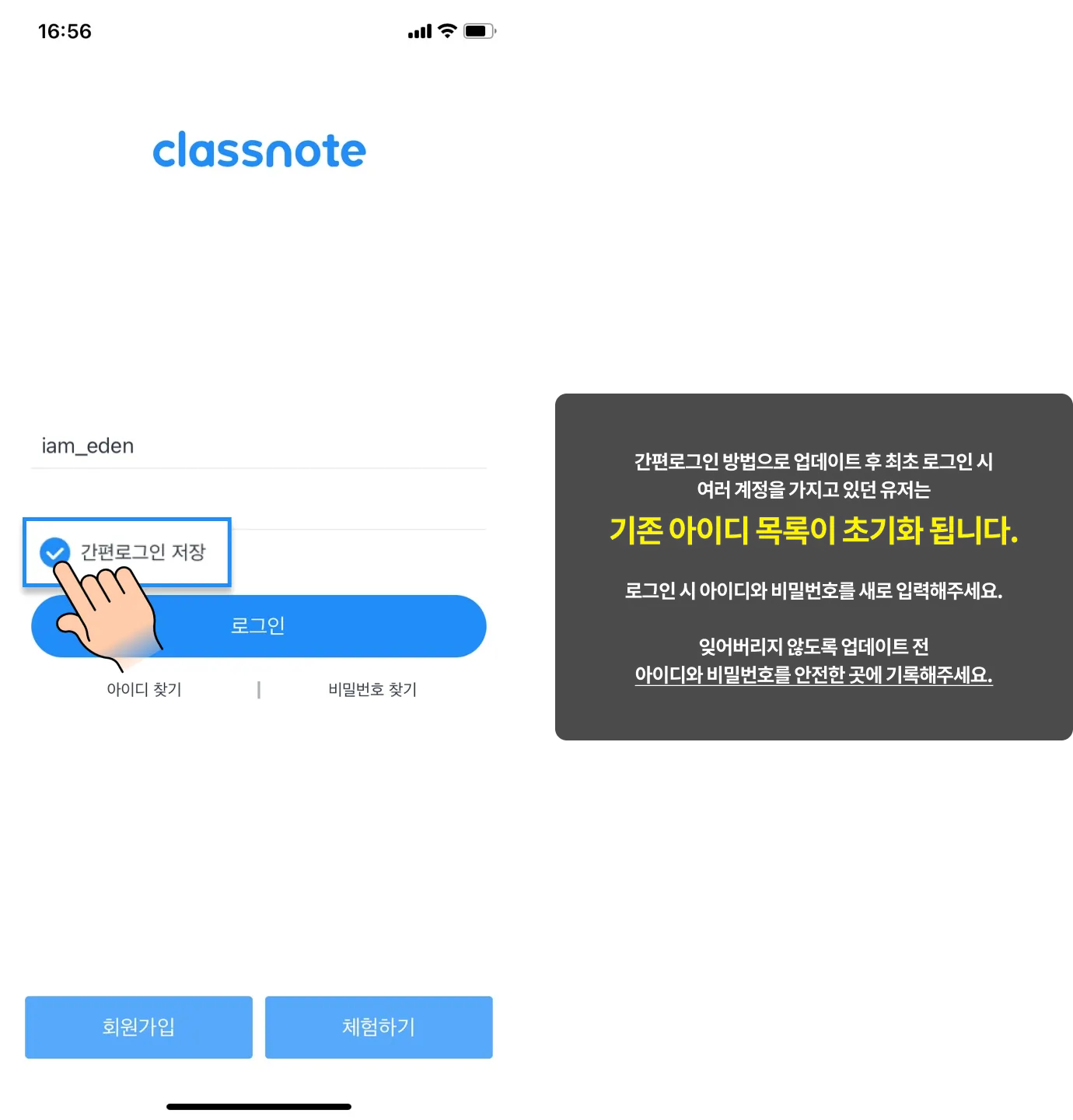 클래스노트 이용자의 개인정보를 보호하고, 더 간편하게 로그인하실 수 있는 ‘간편로그인!’