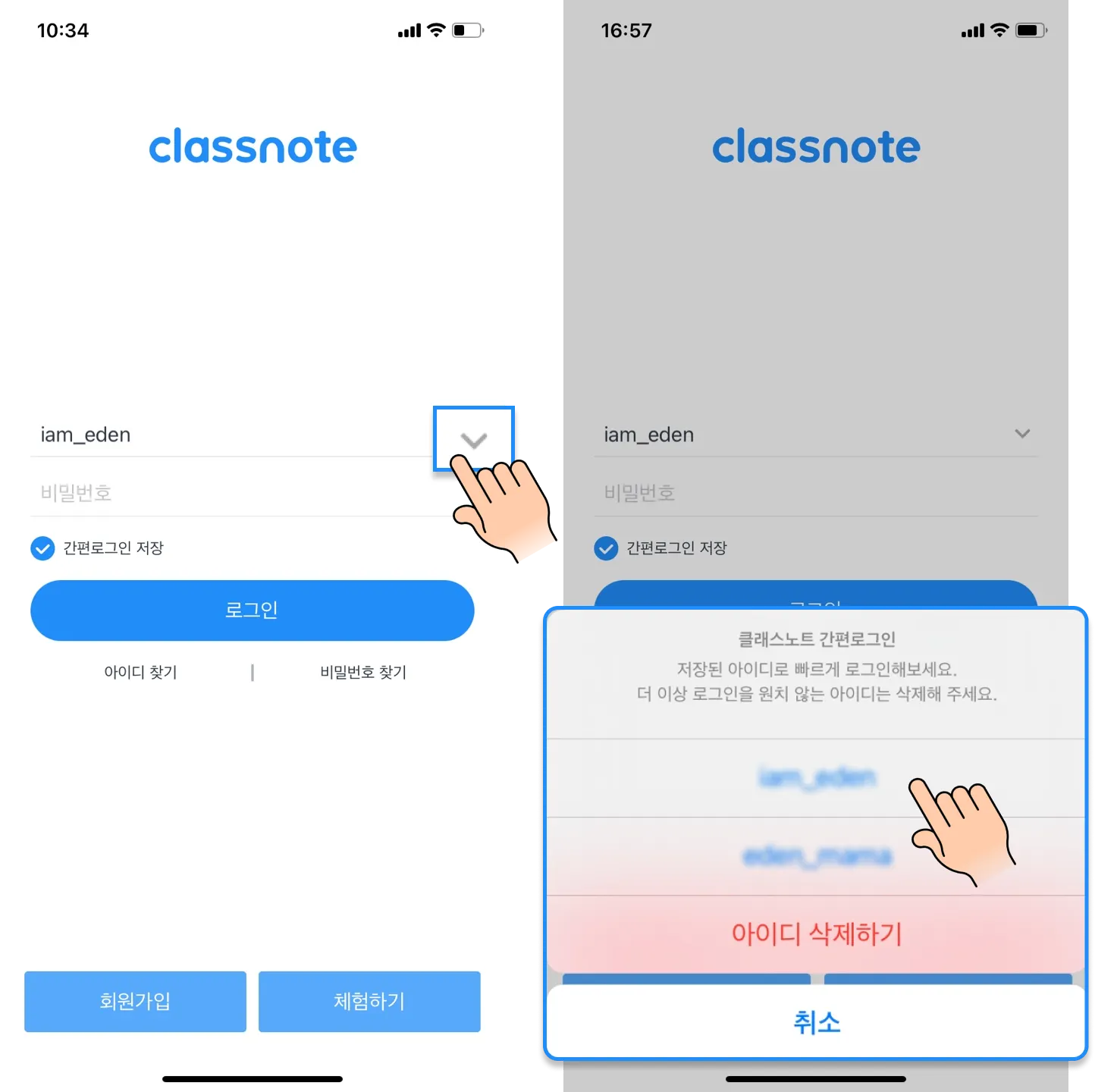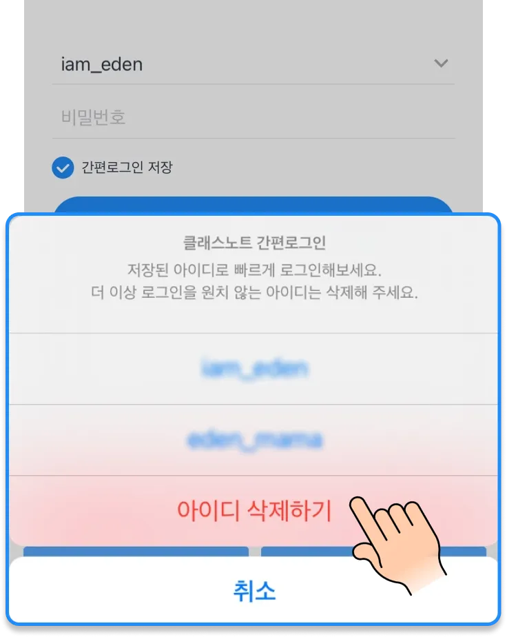 필요한 경우, 간편로그인에 저장된 계정을 삭제할 수도 있어요.