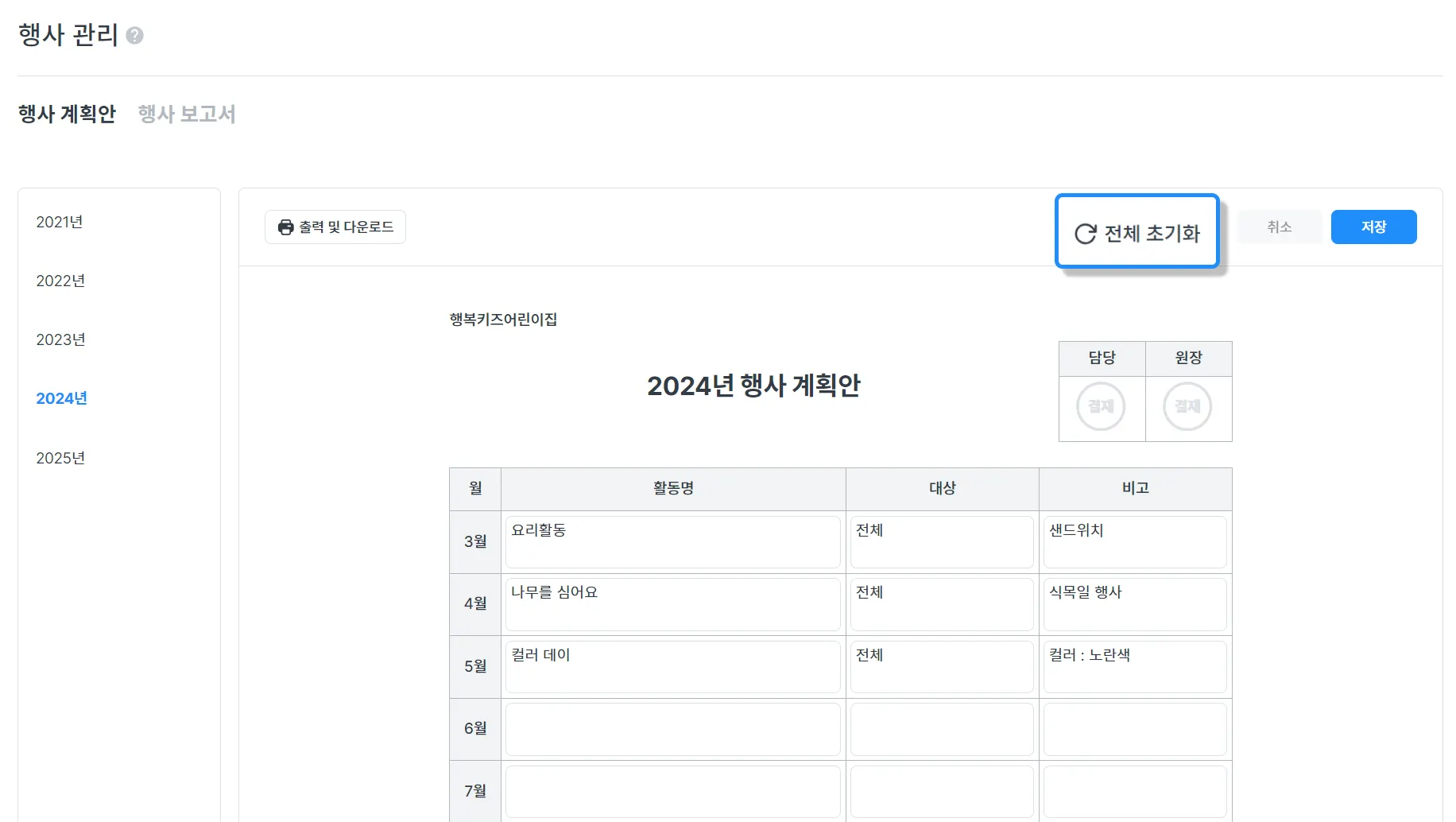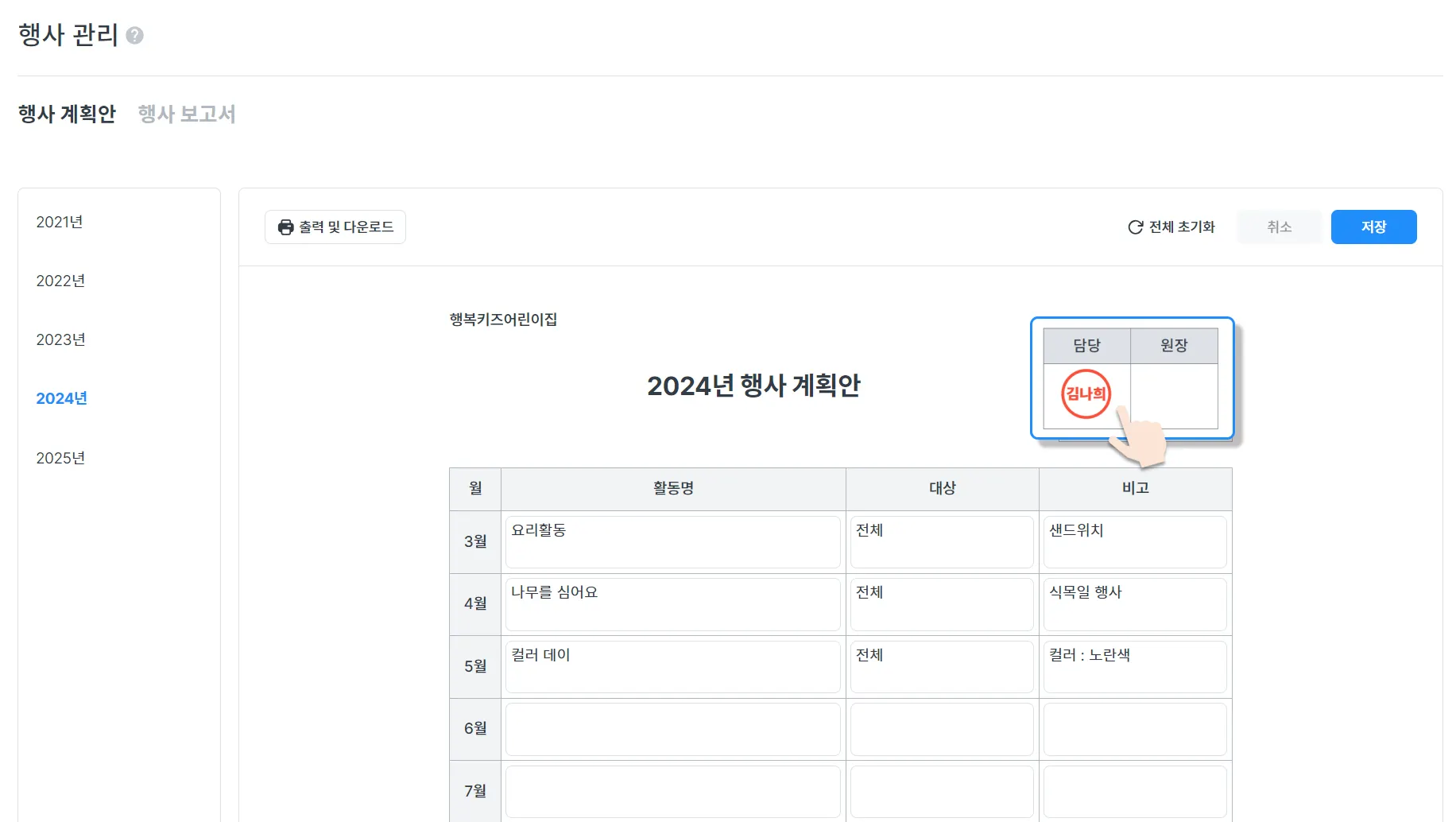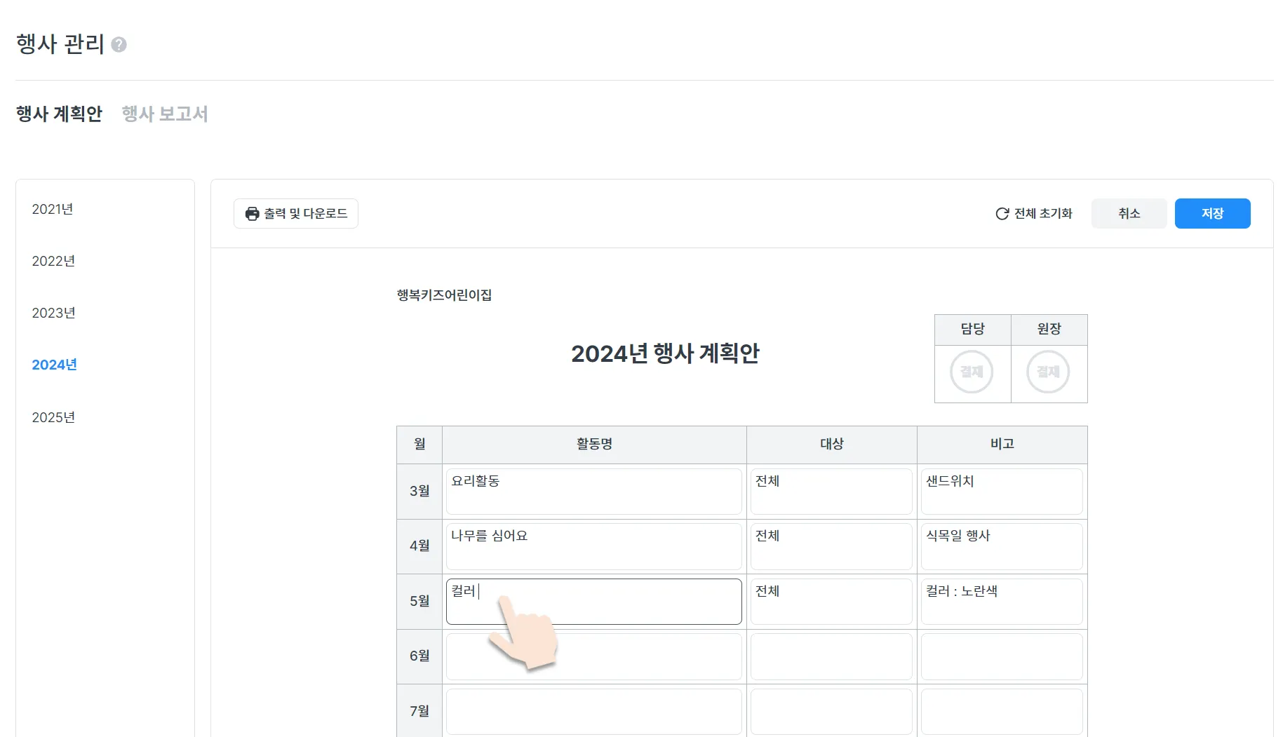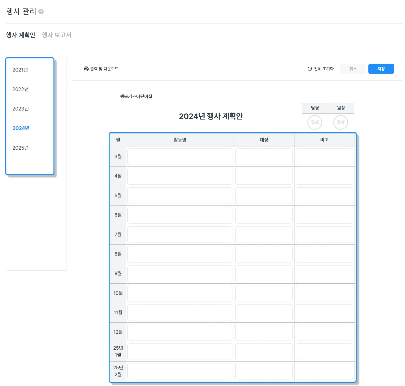 연도별로 행사 계획안과 보고서를 작성하고 확인할 수 있어요!