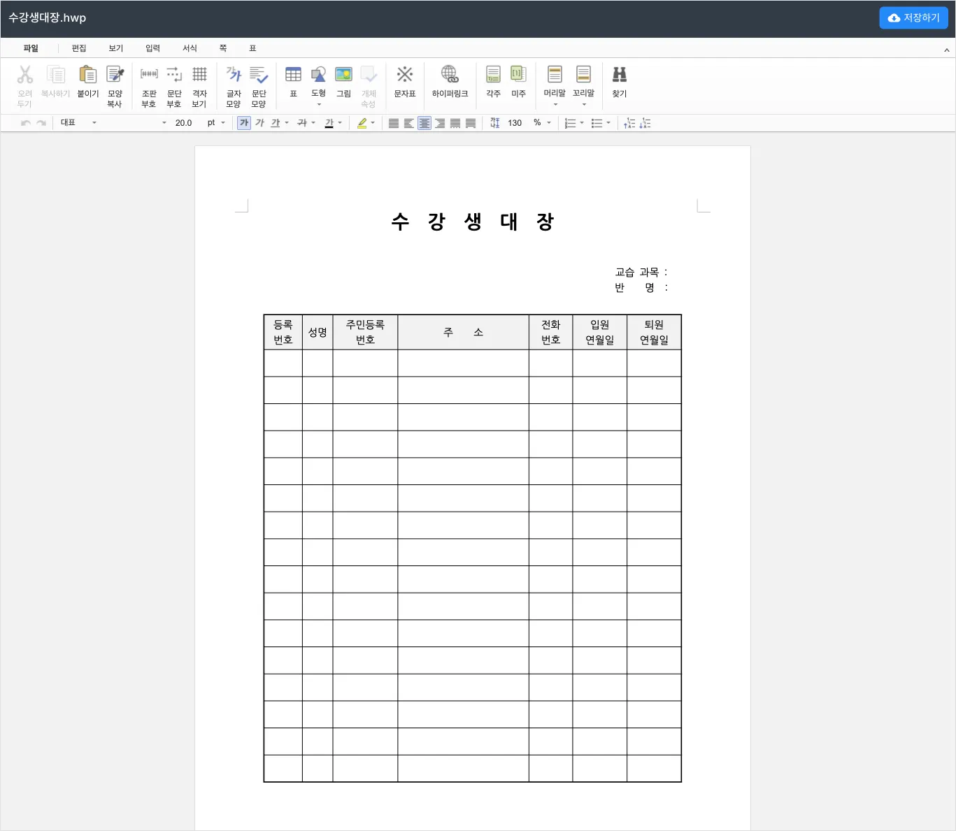 문서함에서 학원 점검 서식을 관리하고, 작성하여 보관할 수 있어요.
