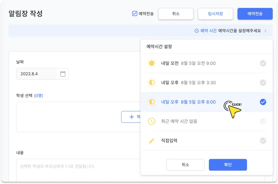 일정표에서 중요한 일정을 등록하여 학부모님께 공유할 수 있어요.