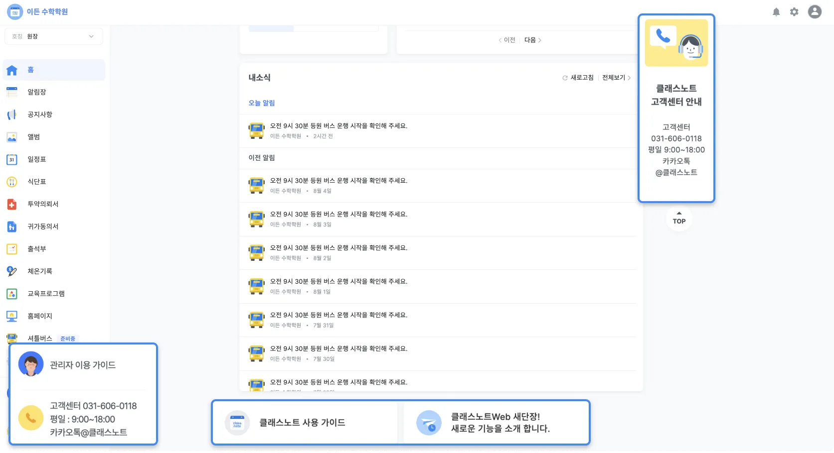 원장님, 선생님이 편리하게 업무를 볼 수 있는 환경을 제공할 수 있도록, 끊임없이 고민하고 귀 기울이는 클래스노트가 되겠습니다