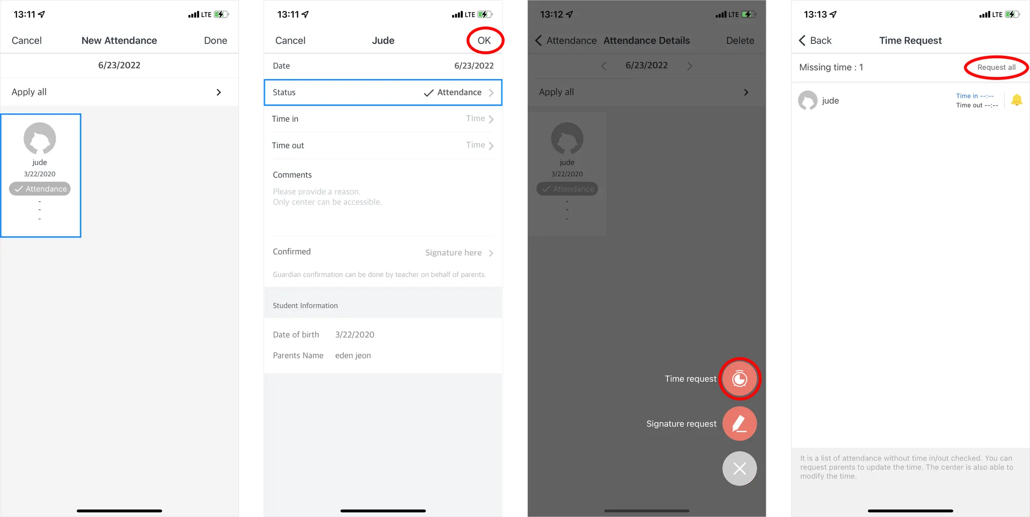 Update Status and Time, and when necessary, you can request parents to fill in the time.
