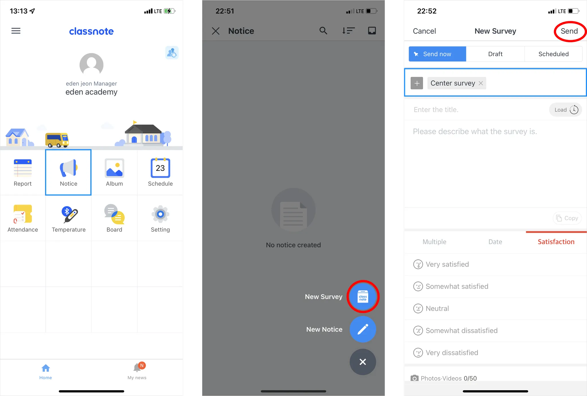 Access ‘Class Note’ App and select ‘Notice’ > ‘New survey’.