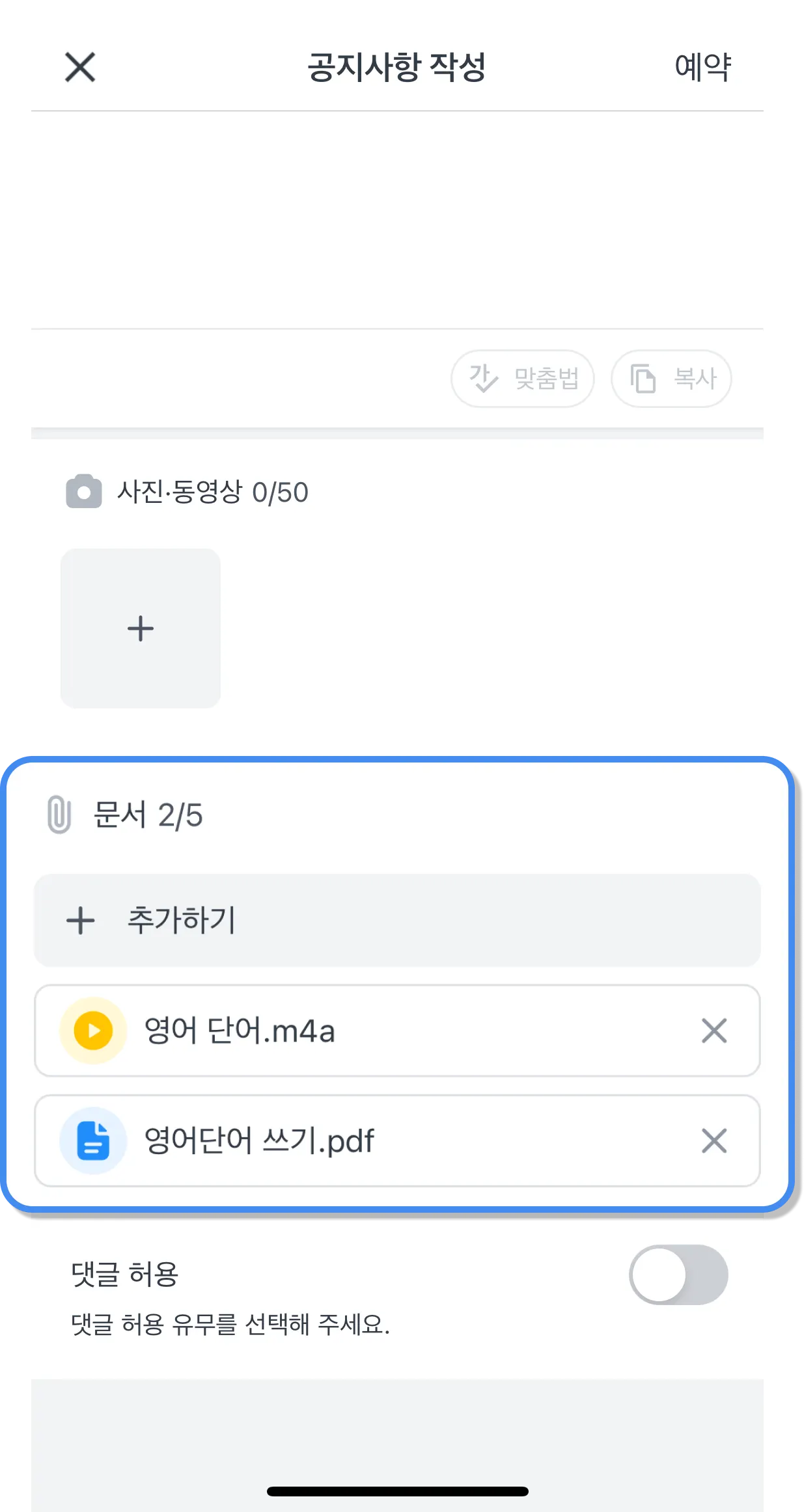 학부모님들은 알림장 문서를 어떻게 첨부하나요?