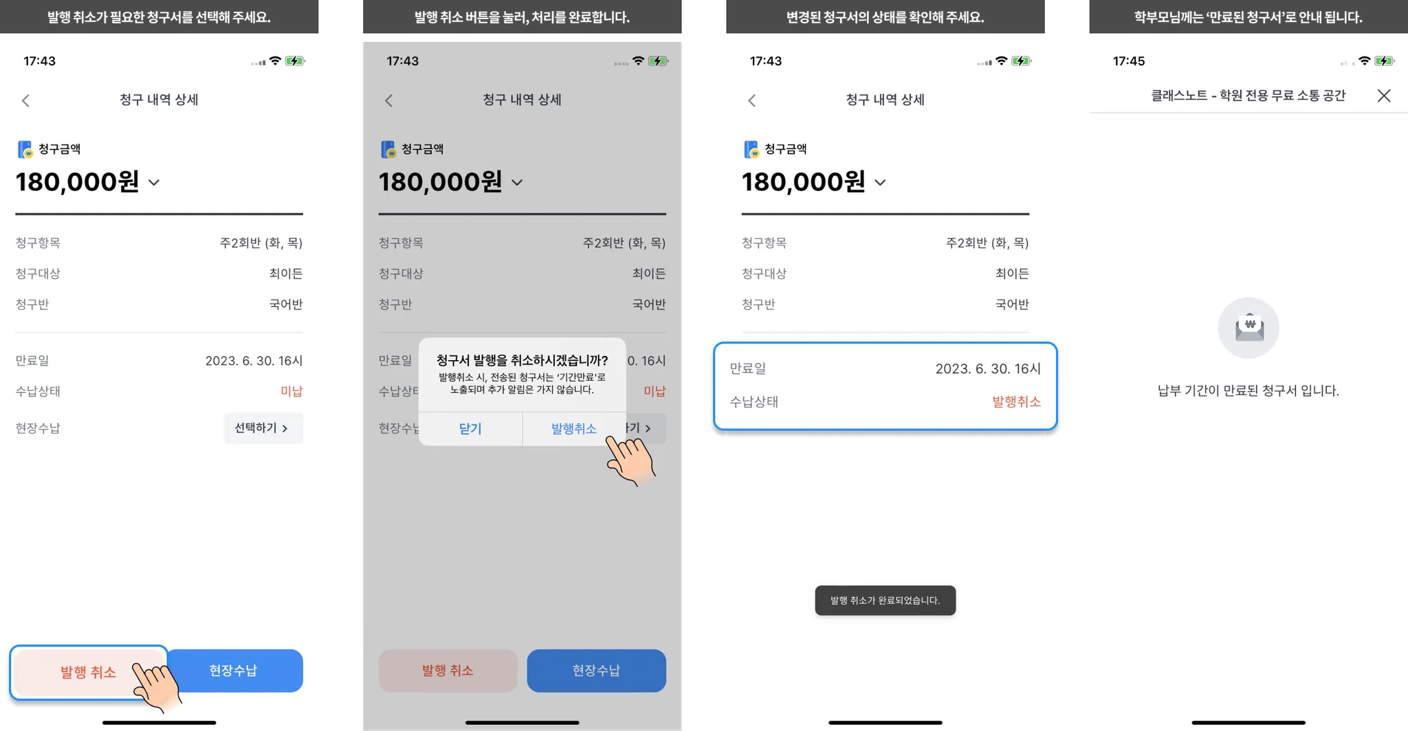 이제 앱에서도 청구서 발행 취소가 가능해요.
